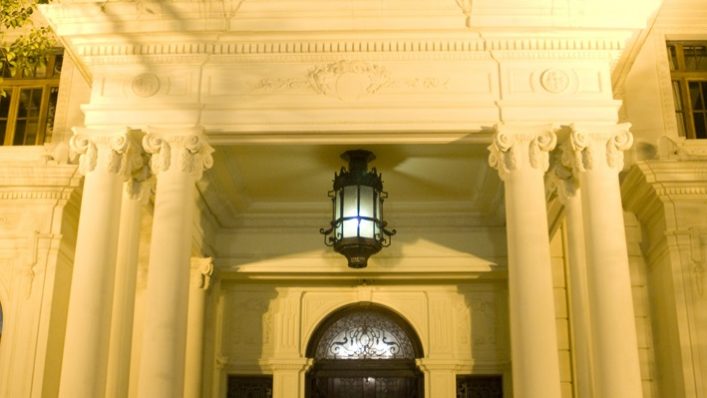Curiosidades – O palacete foi construído entre 1930 e 1937, seguindo o estilo europeu da época. Pelo trabalho de restauração, descobriu-se que cada quarto tinha originalmente uma pintura diferente, sempre imitando tecido, com estampas típicas de castelos franceses. No centro do primeiro andar, onde ficam os quartos principais, há uma pequena capela inspirada no Mosteiro dos Jerônimos, de Lisboa; o entalhamento na madeira, da escada principal e que leva a esta capela, exibe símbolos religiosos. No subsolo, há um o anfiteatro, com capacidade para cerca de 50 pessoas sentadas e, na sala principal (térreo), um balcão para saraus e apresentações musicais. A história conta que Leôncio de Magalhães não chegou a morar na mansão. Morreu um ano antes da sua conclusão – mas a mulher Ernestina e os cinco filhos, solteiros, moraram ali por cerca de 15 anos. A partir de 1974, o casarão serviu de sede para a Secretaria da Segurança e Delegacia Antissequestro, que preservou a estrutura geral da casa.